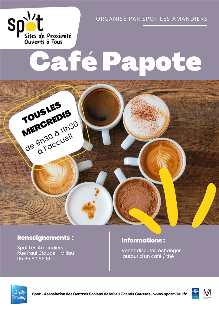 Café Papote Tous les mercredis matin, au Spot Les Amandiers. Retrouvez Fanny pour un temps d'échange convivial. Entrée libre, ouverte à tous. Café, thé offert! Partager 11 septembre 2025